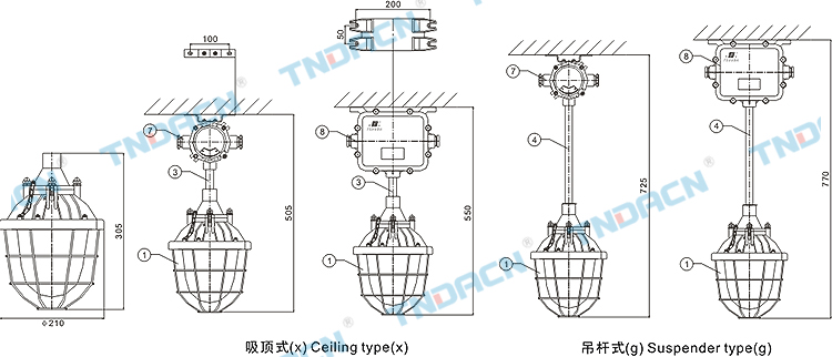 | DIP A20 TA,T4等效于 Ⅱ1D ExtD A20 T4(欧标) | IP54 | 10~14 | 3/4 | E27 |
