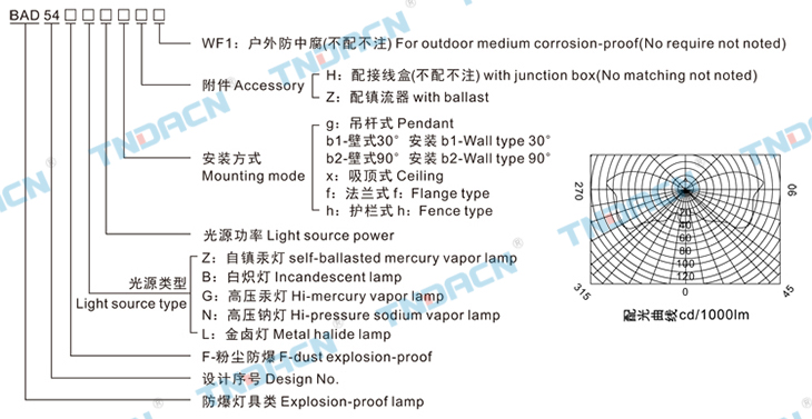 5.可配装白炽灯、汞灯、高压钠灯、金卤灯;