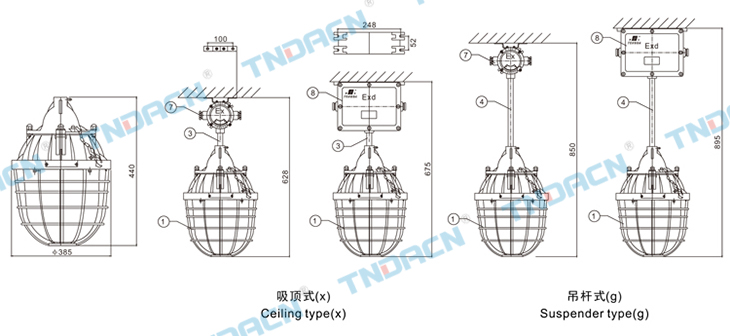 2.Explosive gas atmosphers: classⅡA ⅡB ⅡC orinflammable dust environment;