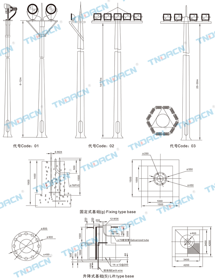 2.Base of the high pole lamp shall be prepared by user