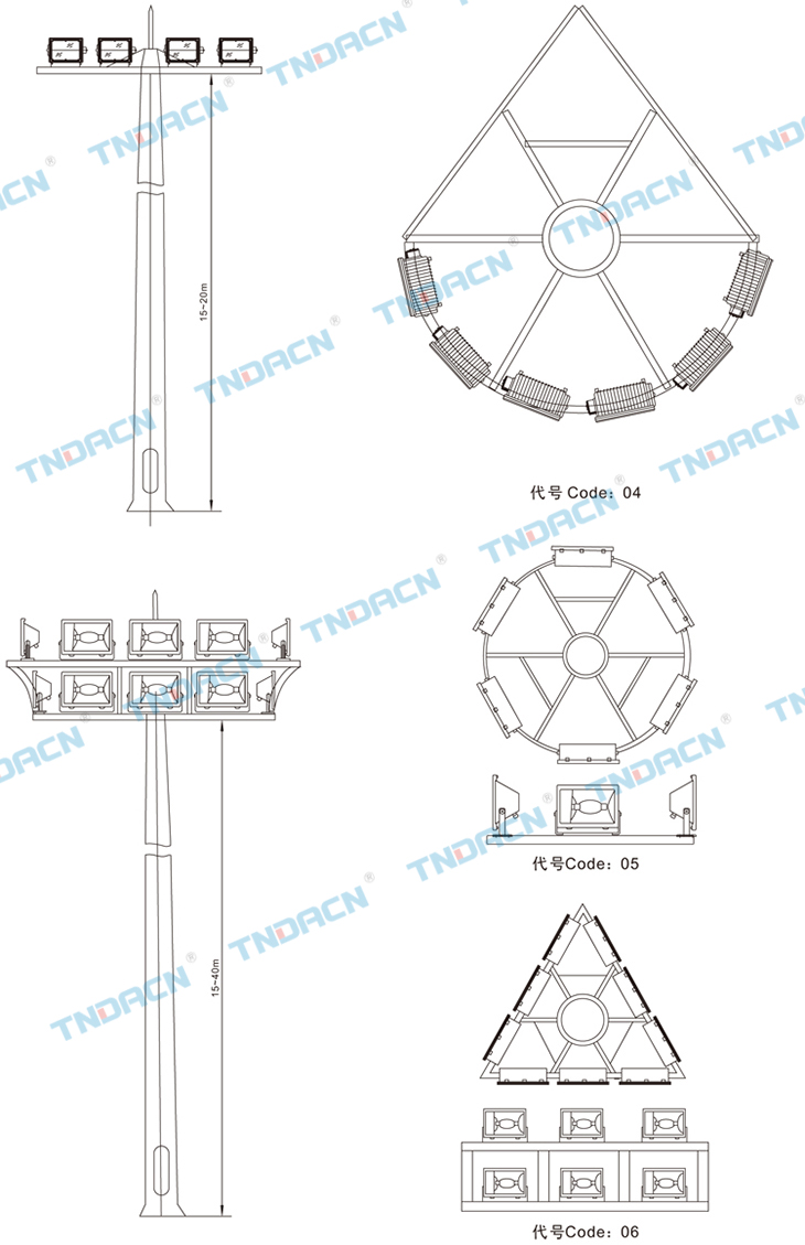 1.This high pole lamp is with perfect structure, strong intensity, it isconvenient to assembly, maintain orreplace luminaries, reliable liftsystem, electric system and advanced technology;