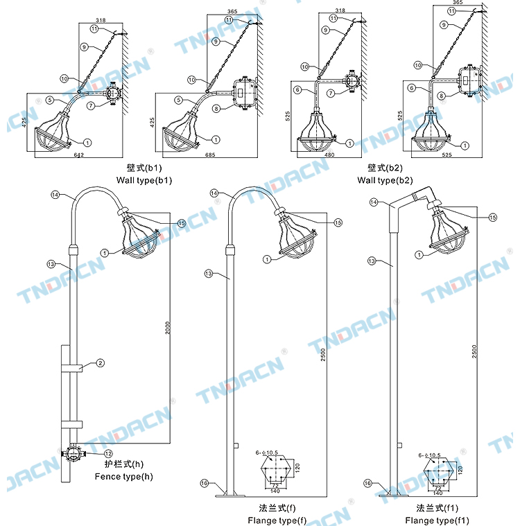 5.可配装白炽灯、汞灯、金卤灯;