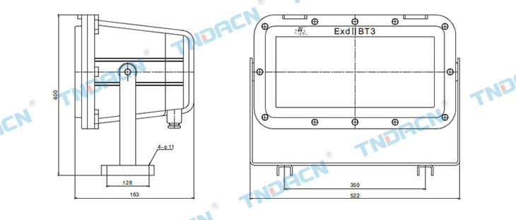 1.壳体采用高强度合金铝一次性压铸成型,表面经高速抛丸清理后高压静电喷塑。外壳结构紧凑合理、材质密度高强度好、 防爆性能优良,表面塑粉附着力强具有良好的防腐能力,表面光洁,美观大方; 2.高硼硅玻璃,透光性好,不锈钢外露紧固件; 3.灯体可水平安装或壁式安装,45~90°可调; 4.灯具与镇流器等附件为一体式设计,便安装维修。有较强的防水性能,可用于石油平台及油轮舰艇等恶劣环境场所; 5.反光罩经过专业二次配光设计,并得到实际应用验证,采用镜面不锈钢反射板,照射角幅度大;可加装补偿电容,补偿后CosФ≥0.8; 6.电缆布线。 1.Shell made of high strength aluminum alloy casting off the surface after blast cleaning by high voltage electrostatic spray. Shell compact structure, high density material strength, Explosion-proof performance, the surface of plastic powder adhesion ability with good anti-corrosion, the surface smooth, elegant appearance; 2.Lamp housing is made of high borosilicate glass with great transmittance. Outer fasteners are made of stainless steel. 3.It can have horizontally installation or walled installation. Adjusting in the range of45°~90°. 4.Lamp and ballast are designed holistically to install and maintain conveniently. Using in the petroleum platform, tanker,ships and so on, it has fine water proof function. 5.The reflect should get special software design of distribution for two times, and it can have the confirmation of actual test. The baffle board ismade of mirror finished stainless steel. It makes the light soft and make the irradiation range large. We can also add the compensation capacitor.cosФ≥0.8 6.Wiring with cables.