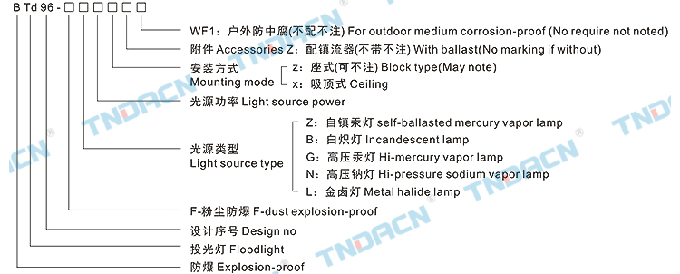| BTd96-F系列粉尘防爆投光灯(DIP) BTd96-F type dust explosion-proof flood lamp(DIP) |