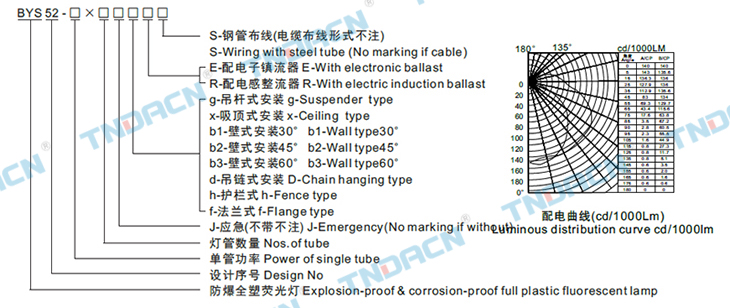 4.内装电子镇流器为我公司特制的防爆镇流器,具有短路和开路保护性能,针对灯管的老化效应和漏气现象配有预防电路,使灯具能正常工作,且高效节能COSф≥0.98,具有宽电压输入,在电压170~250VAC范围内,均能保持恒功率输出,不影响输出光效;