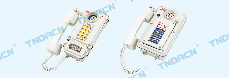 本系列电话机适用于有甲烷、煤尘等爆炸性混合物气体的煤矿井下,做为采煤工作面、掘进工作面、装载点、运输巷、变 电所、水泵房等场所的通讯工具,与煤矿总机联合使用,构成矿用生产调度和行政通讯网络。 The series telephone is used under the coal mine which is full of explosive mixture gas such as methane, coal-dust and soon, in medium surrouded,it can work as a commu-nication tool along the workplaces such as coal-cutting and water pumphouse etc, it can work with cioal-mining main telephone and be come the commuication net of mining production dispatchingand admin stration.