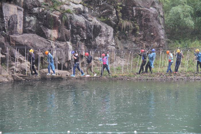 午饭后,全体员工前往九里溪拓展,第一关:过缅甸桥;第二关:抽板过河;第三关:飞檐走壁;第四关:滑索过河;第五关:飞夺泸定桥;第六关:携手并进;第七关:勇往直前;第八关:浮柱桥;第九关:凌波微步;第十关:荡索过涧。。。。。